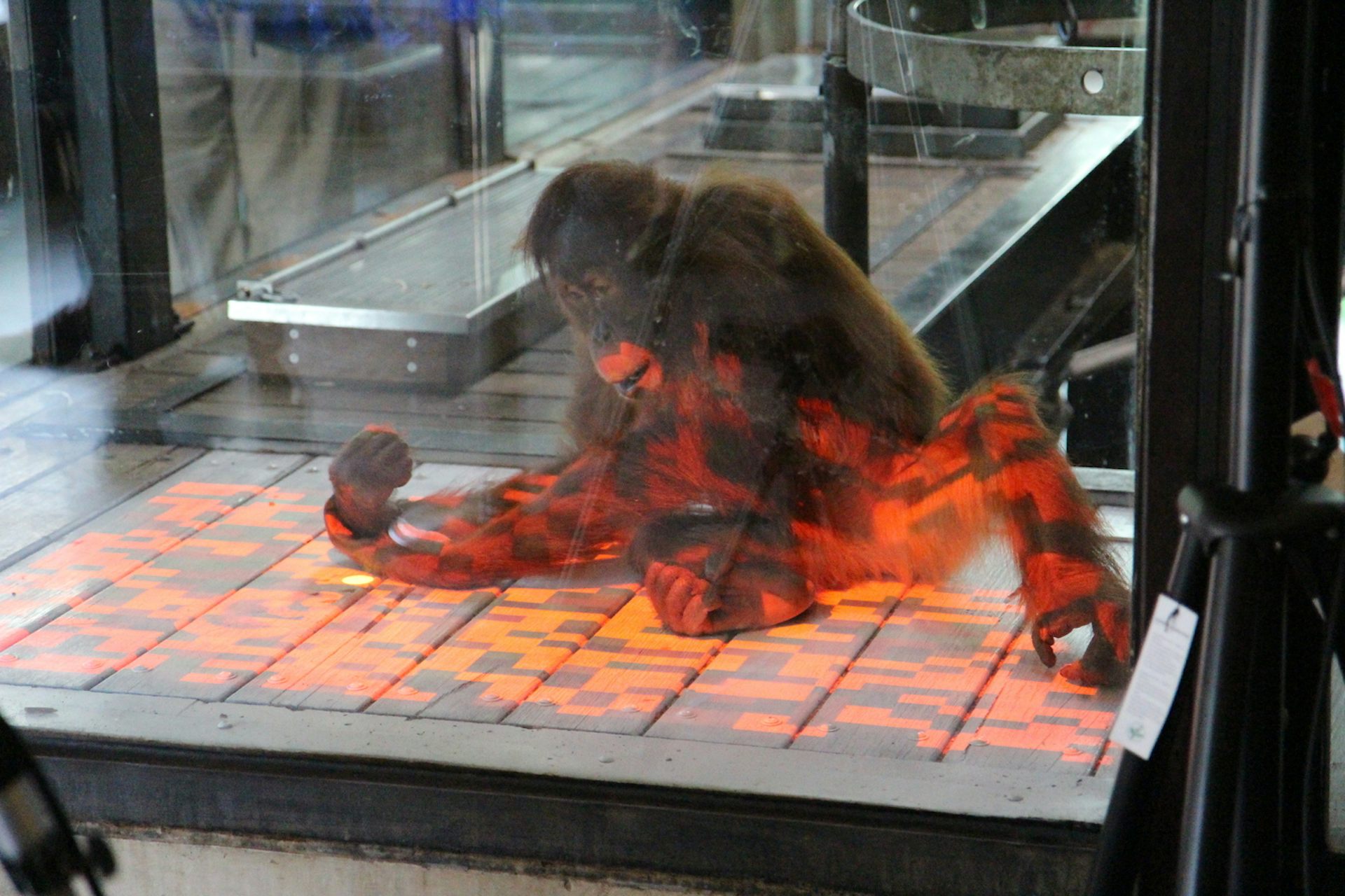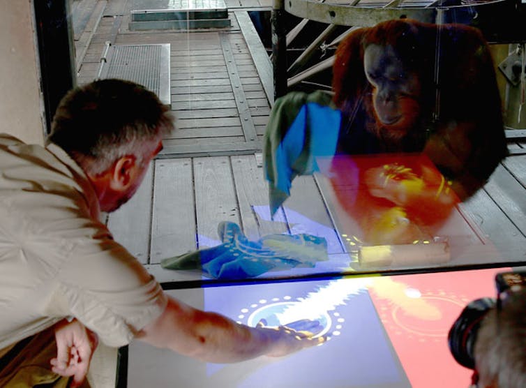 Visiting the orang-utans at the zoo brings us face to face with some of our closest relatives. Moments of connection with these intelligent creatures can be powerfully emotional. We heard recently about the amazing experience of a visitor to Melbourne Zoo who sat to breastfeed her child and was watched with interest by a female orang-utan. Families are also regularly captivated by the antics of the Zoo’s youngest orang-utan, who seems to delight in playing near children on the other side of the glass. Now Zoos Victoria and technology researchers are collaborating to explore whether digital technologies could let orang-utans choose to interact safely with visitors in entirely new ways. Digital enrichmentFor modern zoo organisations such as Zoos Victoria, the animals’ wellbeing is top priority. Cognitive enrichment is vital, particularly for species such as primates and elephants which evolved astonishing intelligence and problem-solving skills to meet the challenges of survival in the wild. Research suggests that orang-utans like to watch what’s happening on the visitors’ side of the glass, and interacting with visitors could be an important form of enrichment for them. There is a real art to developing enrichment that encourages smart animals to use their intellect to explore and solve problems. On occasion, keepers at Melbourne Zoo have taken hours to prepare a new fiendish food puzzle, only to see the orang-utans solve it in a matter of minutes. And of course enrichment must be safe and robust (an orang-utan can be nine times stronger than a human), which limits the equipment that zoos can use. To continue to provide novelty and variety, primate keepers have started to add digital enrichment to the range of existing activities. At Melbourne, and a number of other zoos, orang-utans have learned to use a tablet computer through the wire of the enclosure to play with chase games, music-making and painting apps. As a team of technology researchers and zoos professionals, we are investigating new forms of digital enrichment. Our collaboration began as the result of a happy accident: a Melbourne Zoo staff member happened to visit the Microsoft Research Centre for Social Natural User Interfaces, and had the opportunity to play a video game with the Microsoft Xbox and Kinect body tracker. She quickly realised that motion-based games could provide entirely new ways to address the challenges of orang-utan enrichment. Touching gamesComputer-based enrichment is an attractive prospect for zoos. It could be easily modified to provide new challenges, or tailored to an individual orang-utan’s skill level. It overcomes some of the safety issues of introducing new physical objects. And it might allow animals a choice of enrichment when keepers are not available. We have created an interactive projection which works like a touchscreen on the floor, using a projector and a Microsoft Kinect body tracker placed outside the enclosure. Recently we have been trialling simple games to show the orang-utans that this interactive projection responds to their touch, and start investigating how they might use it. In our first game, which has proven a big success, large coloured dots move around the projection and explode in pulsing waves of colour when touched. The interests of Melbourne Zoo’s orang-utans have inspired some of our apps, including one which allows the animals to view photos or videos, choosing them from a gallery. We are confident that the orang-utans would quickly learn to use the touchscreen if we train them to. However, as part of our research we have let orang-utans explore the touchscreen without direction. By not rewarding them for using the projection, we have been able to investigate how interesting this enrichment is to them, see how intuitively they take to it, and see their preferred ways of interacting with it. The six orang-utans at Melbourne Zoo have all tried out the interactive projection, and most seem to have learned that fun things happen when they touch the bright moving shapes on the floor. Excitingly, they have shown us some unexpected styles of interaction, such as kissing the projection, sweeping it with the back of the hand, exploring how it works with physical objects and even swooshing a cloth at it from above. Interactive connectionWe hope that digital technology will allow animals greater choice over their environment and enrichment. A first step will be for orang-utans to choose which game to play. In the future, they might be given control over lighting or temperature, or perhaps even feeding schedules and interaction with other animals or humans. An orangutan and keeper play a game on either side of the glass, at Melbourne Zoo. Zoos Victoria, Author providedAs orang-utans seem to find humans interesting, we are experimenting with creating a shared digital space where orang-utans can choose to interact safely with keepers and even visitors. In our first trial of a game for humans and orang-utans, we saw with delight that they chose to play even with people they had not met before, creating a powerful sense of connection for the human player. The day is perhaps not far off when digital technology might let you get closer than ever to our primate cousins. Sarah Webber, PhD Student in Human-Computer Interaction, The University of Melbourne; Marcus Carter, SocialNUI Research Fellow, The University of Melbourne, and Sally Sherwen, Animal Welfare Specialist, Zoos Victoria, The University of Melbourne This article is republished from The Conversation under a Creative Commons license. Read the original article. |